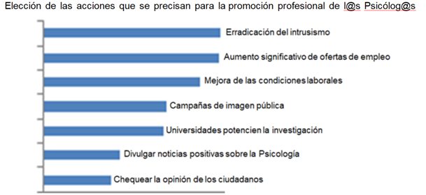 Los numerosos psicólogos que entre julio y octubre del pasado año contestaron al cuestionario de la Plataforma Cuidemos la Psicología sobre las iniciativas a promover en favor de la Psicología, dejaron meridianamente clara la opinión de l@s Psicólog@s sobre cuestiones trascendentales para la profesión.